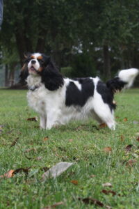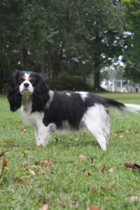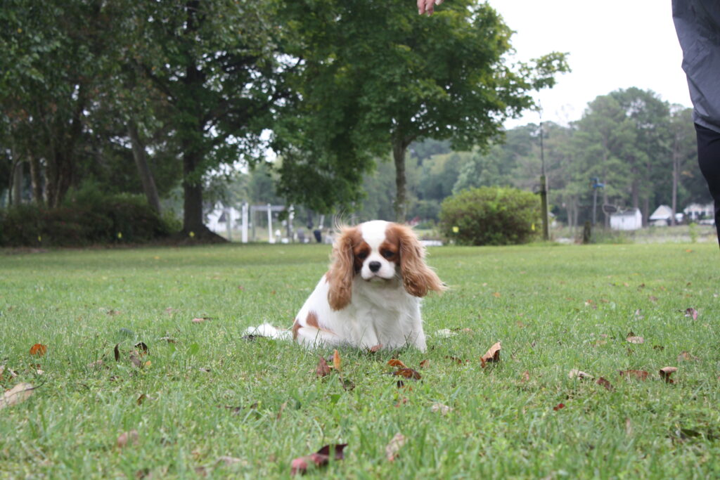 Avery is a tricolor cavalier born September 2020 and is AKC registered, DNA clear, healthy with championship bloodlines. She is outgoing, friendly disposition that is a fantastic mom that loves playing with her puppies before going to their new homes.