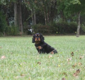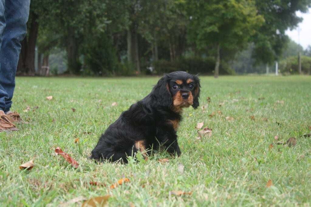 Raven is a pure black and tan cavalier born July 2025 and is AKC registered, DNA clear, healthy with championship and Russian bloodlines. A sweet girl, beautiful coat, she loves to be close and get belly rubs. Raven is a welcome addition to our breeding program expanding diversity in genetic backgrounds.