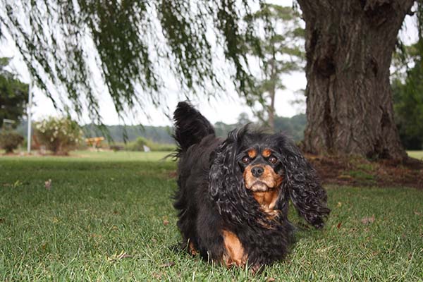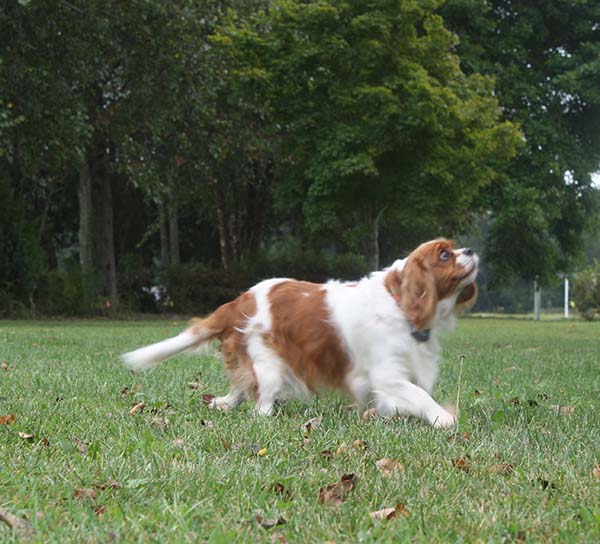Layla is a tricolor cavalier born September 2021 and is AKC registered, DNA clear, healthy but a little girl weighing ten pounds most of her life. Layla had a traumatic dislocated patella surgically repaired as a puppy trying to jump up on a lap and missed. Today she runs like a gazelle and can jump at least double her height. She was spayed and retired after having an unplanned healthy litter of four puppies given her small size. Full of energy and love, she is Milt’s little girl.